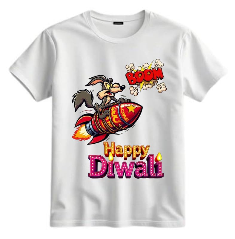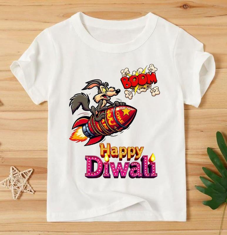 Celebrate Indian festivals with this Moody Looks’s adorable Happy Diwali Printed T-Shirt for kids! Designed for comfort and tradition, this Moody Looks half-sleeve t-shirt is made from 100% soft fabric, Celebrate the festival of lights with this Kids Cute Cartoon Happy Diwali Printed T-Shirt for all-day comfort. Featuring a bright and fun cartoon Diwali design, this unisex tee is perfect for boys and girls- suitable for both boys and girls. Whether paired with jeans, leggings, or ethnic bottoms, this durable and easy-to-wash t-shirt is a must-have for festive celebrations. Make your little one shine with this unique Indian traditional outfit!