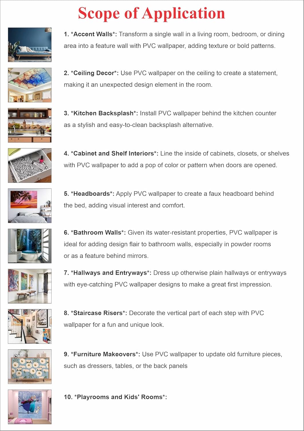 Easy Installation: Designed for hassle-free installation, these wallpapers can be easily applied to any smooth surface.