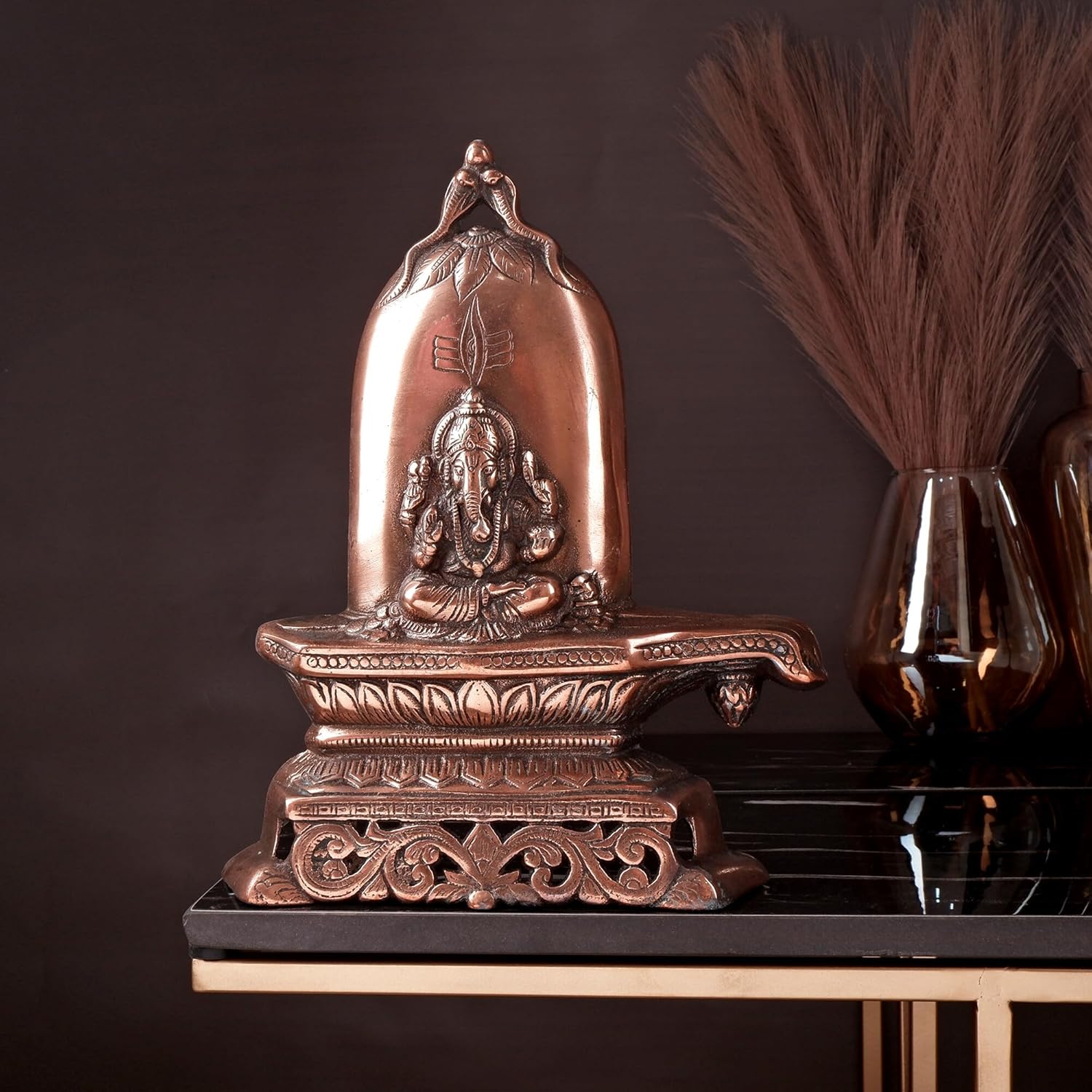 A Shivling Ganesh statue is a unique and sacred depiction combining two revered Hindu deities, Lord Shiva and Lord Ganesha. The statue typically features a Shiva Lingam, representing the formless and infinite aspect of Lord Shiva, symbolizing creation, protection, and transformation. Emerging from or adjacent to the Lingam is the figure of Lord Ganesha, characterized by his elephant head and human body, symbolizing wisdom, intellect, and the remover of obstacles. Ganesha is often depicted in a seated position, adding a sense of serenity and reverence. The intricate details of the statue highlight Ganesha’s attributes, such as the modaka, goad, and noose. The fusion of the Lingam with Ganesha signifies the harmonious blend of divine energies and the unity of father and son. This statue is often adorned with traditional ornaments and inscriptions, enhancing its spiritual significance. It serves as a powerful reminder of devotion, the removal of obstacles, and the profound connection between creation and wisdom.